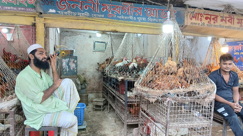 ক্রেতার অপেক্ষায় বসে আছেন মুরগী বিক্রেতারা।